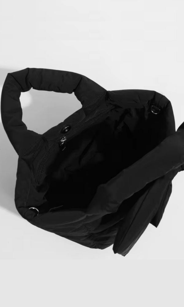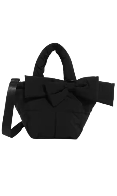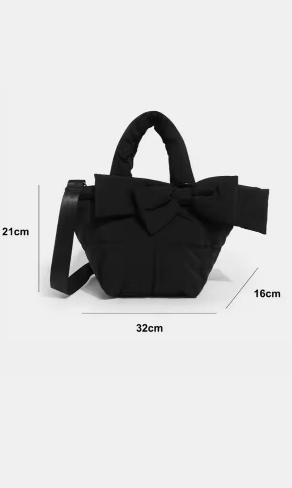 FRENCH BOW BLACK QUILTED TOTE BAG